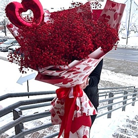 Ziedu pušķis Nr.106 (tulpes, gipsofila, zaļumi)
